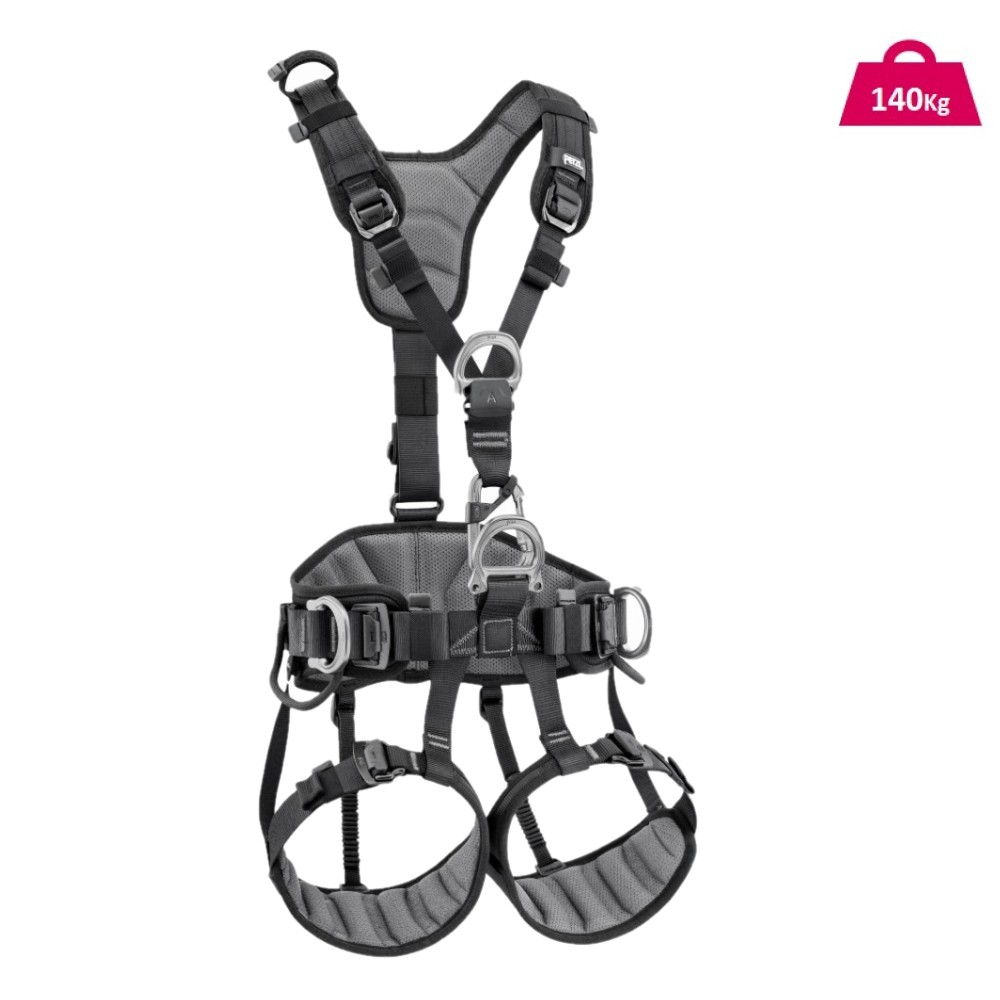 El arnés AVAO está especialmente diseñado para los trabajadores en altura. Su diseño se adapta a las características del posicionamiento en el trabajo y del descenso por cuerda. Los acolchados preformados y la construcción semirrígida del cinturón y de las perneras, ofrecen más confort durante la utilización. El cinturón, con sus puntos de enganche laterales metálicos, sus anillos portamaterial y sus trabillas portaherramientas, permite organizar todo el material necesario en una jornada de trabajo. Por último, la regulación es simple y rápida gracias a las hebillas autobloqueantes DOUBLEBACK.