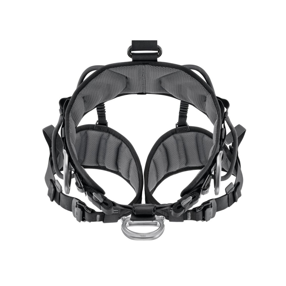 – Todas las zonas de contacto, tirantes, cinturón y perneras, con espuma preformada y acolchada de tejido transpirable, permiten al usuario evolucionar y trabajar confortablemente.